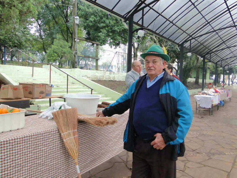 Outro expositor feliz era Bruno Guilante, de Forqueta Baixa, que produz vassouras. Participando da feira pela terceira vez, disse que a feira tem trazido bons resultados. Guilante produz vassouras há cerca de dois anos. Recentemente legalizou a produção, se enquadrando como agroindústria, já que cultiva a matéria-prima principal. Hoje tem capacidade para fazer 10 vassouras ao dia. Contudo, como não se dedica exclusivamente à atividade, pretende fazer de 500 a 600 vassouras neste ano. Além de comercializar na feira Bruno tem clientes em praticamente todo o município. Para ele, o diferencial do seu produto é a qualidade da amarração. “Tem que ser bem firme, senão logo fica solta”, declara.