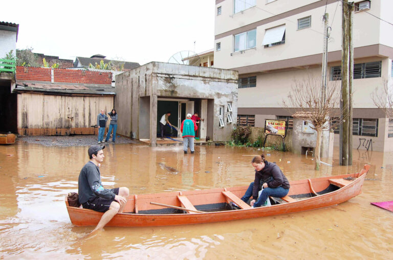 A enchente do rio Taquari desalojou mais de 400 famílias em Arroio do Meio. De acordo com a Defesa Civil local, 350 estão alojadas nos ginásios dos bairros Bela Vista, Rui Barbosa, Barra do Forqueta e no loteamento Glória. As demais estão em casas de familiares e pavilhões de empresas.