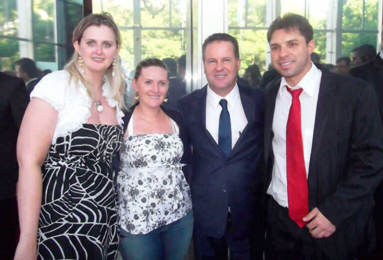 Os arroio-meenses Greicy Weschenfelder, Carine Kaisekamp e o secretário de Administração Márcio Cazotti acompanharam a posse do presidente da Assembleia, o deputado Alexandre Postal.