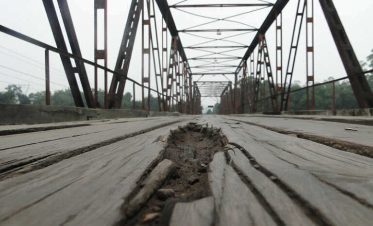 Alguns meses depois, a situação continua. Buracos e desníveis ainda existem, dificultando o tráfego de motocicletas. A última reforma da ponte que veio da Alemanha em 1939, foi realizada em 2011, em parceria entre as prefeituras dos dois municípios. Na época foi substituída toda a parte de madeira que corresponde aos trilhos e madres.