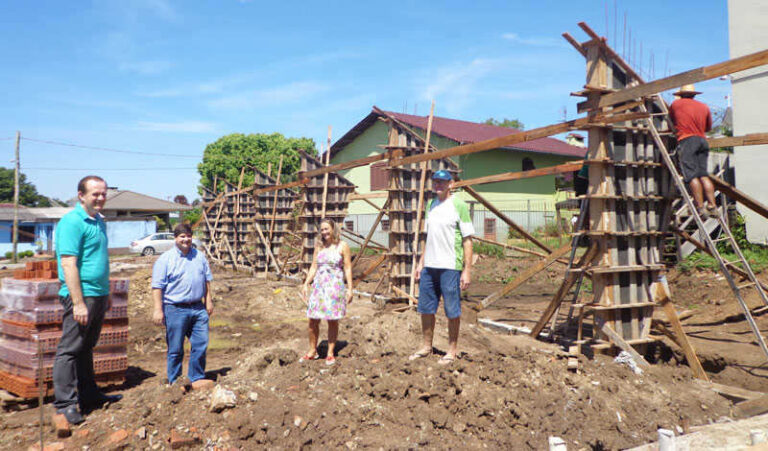 Arroio do Meio – Com os pilares de sustentação da estrutura metálica do telhado erguidos, começa a tomar forma a Quadra Coberta de Esportes do bairro Bela Vista, localizada nos fundos da Escola Municipal de Ensino Fundamental (Emef) Bela Vista. Após concluída esta etapa, junto à construção dos vestiários, a estrutura do telhado será instalada, permitindo a continuidade do serviço, indiferente das condições climáticas. O contrato que prevê a obra foi assinado em 3 de dezembro, no auditório da escola, na presença de autoridades, pais, professores, direção da escola e demais representantes da comunidade.