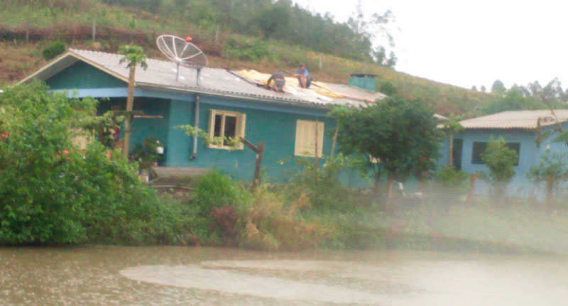 Vale do Taquari – Depois de uma semana de chuva intensa e enchente, municípios da região e de boa parte do Estado foram afetados por temporais na noite desta quarta-feira e madrugada de quinta-feira. Em Arroio do Meio houve precipitação de granizo, mas sem maiores danos em casas e galpões. Já em Travesseiro e Capitão os estragos foram maiores. Nas localidades de São Luiz, Linha Picada Centro, Sete Estradas e Marinheira, interior de Capitão e na Sede e parte das localidades de Picada Felipe Essig e Linha São Miguel, em Travesseiro, os estragos foram consideráveis em função do forte granizo.