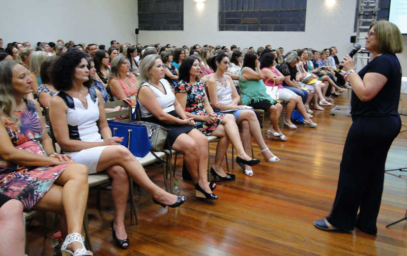 Com 34 anos de experiência em sala de aula, a palestrante Daiani Clesnei da Rosa falou aos professores sobre os desafios de ser professor hoje. Segundo ela, eles estão divididos em três itens principais. O primeiro deles se remete ao professor ver o aluno por outros aspectos além do cognitivo, vendo-o como pessoa, na sua integridade. “Deve haver cada vez mais uma integração entre escola/família. Quando o pai vê isso, ele passa a desconstruir a imagem que ele tem da escola do seu tempo. A experiência ruim que teve, faz com que ele não se sinta à vontade para voltar à escola”. A palestrante destacou ainda que o processo de construção das habilidades começa do zero aos 20 anos e, se não houver cuidados, pode existir problemas com o desempenho do aluno. E os pais também precisam pensar como estão desenvolvendo esse papel.