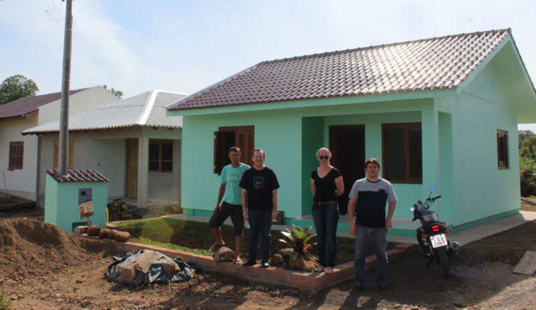Arroio do Meio – Já está devidamente instalado o primeiro morador dentre os 23 beneficiados do Loteamento Econômico Dona Rita/São Caetano. Feliz, o industriário Ricardo Lay, 47 anos, recebeu essa semana a visita do prefeito Sidnei Eckert, secretário de Planejamento Henrique Meneghini e servidora responsável pelo cadastramento do Programa Habitacional, Cintia Gräff. Orgulhoso, mostrou sua nova casa de 50m², com sala, cozinha, banheiro, quartos e um jardim em construção. Há poucos dias instalado, Lay comemora a conquista da casa própria, após anos pagando aluguel. “Isso significa tudo para mim, é um sonho realizado”, afirma. “Seria complicado demais eu conseguir a minha casa própria se não fosse dessa forma, acho que nem teria como”, analisa.