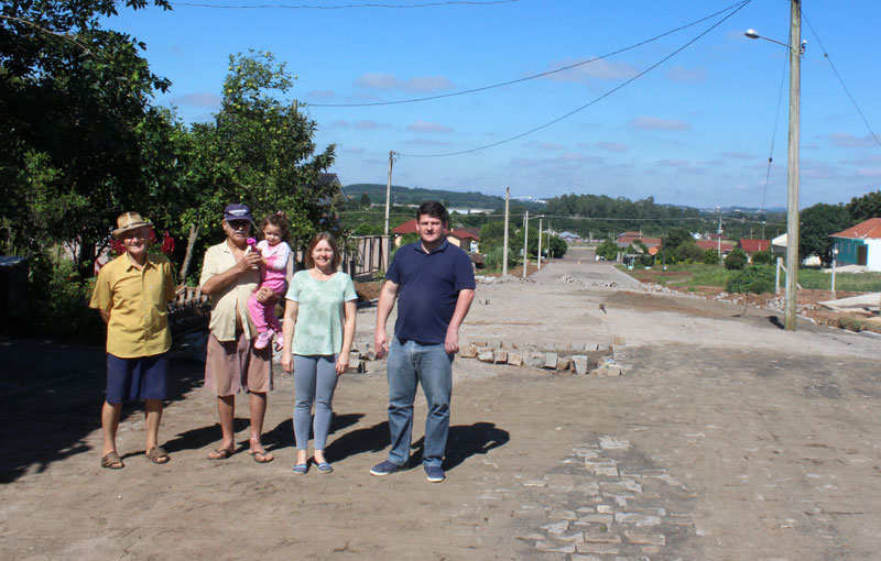 Arroio do Meio – Os moradores da rua Pernambuco, bairro Aimoré, comemoram a agilidade na execução da pavimentação da via. Com detalhes a serem finalizados, a obra iniciada em fevereiro, a partir de uma iniciativa dos moradores, beneficia 10 lotes, somando 1.065 m² de calçamento. A transversal fica entre a rua Friedoldh Kuhn, também em obras de calçamento, e o Loteamento Arno Bruxel, que liga a via à avenida asfaltada Helmuth Kuhn. Adiantando-se à lei 3.269/2014, que prevê a responsabilidade exclusiva do loteador na instalação de redes de drenagem pluvial, iluminação pública e pavimentação, o Loteamento também executou 788m² de calçamento. A união entre os moradores e o loteador elimina os problemas de barro e poeira na via.