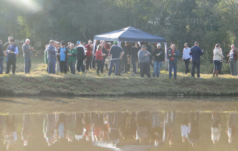 As autoridades foram recepcionadas no clube Esperança de Rui Barbosa, onde apresentaram números referentes à piscicultura no município e na região. Segundo dados da Emater/Ascar, 41 de 55 municípios dos vales do Caí e Taquari, produzem alguma espécie de peixe. São 4.495 produtores que produzem 1.321 toneladas por ano. A visita à propriedade de Guinter aconteceu minutos depois, quando os visitantes puderam conhecer os quatro açudes e saborear peixe frito.