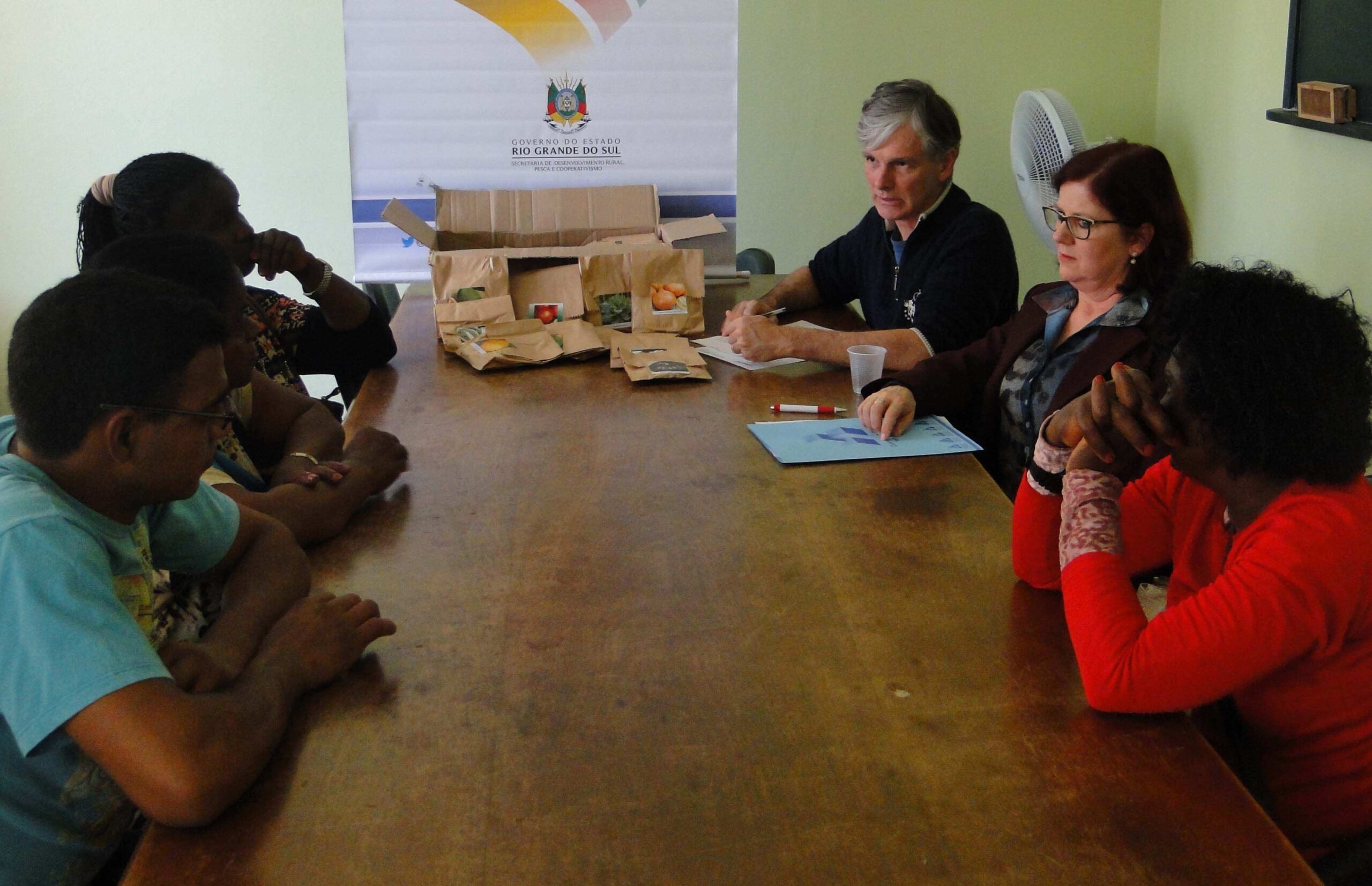 Na sexta-feira, integrantes da comunidade quilombola Vovô Theobaldo, da localidade de São Roque, receberam das mãos da gerente do Banrisul, Diva Guzzo, e do engenheiro agrônomo da Emater/Ascar, André Müller, sementes de olerícolas orgânicas e de flores provenientes do Programa de Sementes do Banrisul.