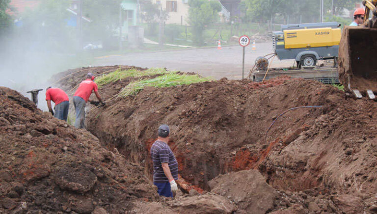 Arroio do Meio – Foi dado início aos serviços para execução da macrodrenagem nos Loteamentos Alto e Vale do Arvoredo, bairro Bela Vista. A obra está em fase de detonação das lajes existentes no subsolo. Assim que concluída esta etapa, será executada a nova rede de drenagem, que viabilizará encaminhar projeto para futura pavimentação das vias do Loteamento. O trabalho segue até o início de dezembro.