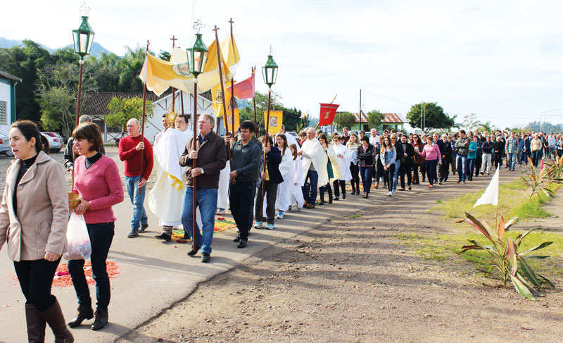 Uma prática que sempre marca a festa de Corpus Christi é a procissão. “Tem um sentido de recordar a caminhada do povo de Deus, que lembra a vivência do dia a dia, do cotidiano. A procissão também lembra que Jesus caminha com seu povo, está presente conosco. É a Eucaristia que nos alimenta, dá força, assim como foi com o maná no deserto Jesus se faz alimento e sustento para a caminhada”, diz o padre.