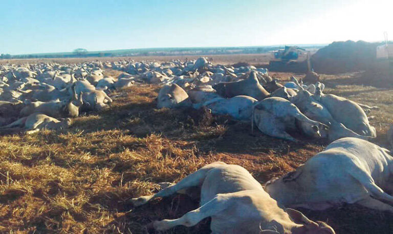 A morte de cerca de 1,1 mil bois com suspeita de botulismo em Ribas do Rio Pardo, no Mato Grosso do Sul, chamou a atenção de bovinocultores de todo o país no decorrer desta semana. A suspeita das autoridades sanitárias é de que o rebanho, que estava quase pronto para o abate, pode ter se contaminado com silagem embolorada com fungos. Os animais apresentaram sintomas de paralisia dos membros e parada cardiorrespiratória. Não se trata de uma doença infectocontagiosa.