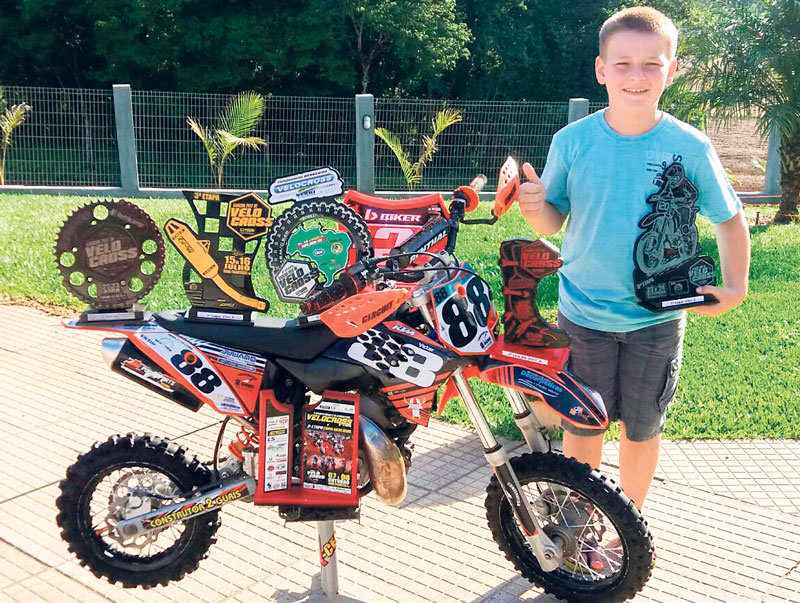 O piloto Victor Weizenmann, 08 anos, sagrou-se Campeão Gaúcho de Velocross – categoria de motos de 50cc, no domingo, dia 05, durante a realização da última etapa do Campeonato Gaúcho de Velocross realizado na cidade de Marau. O campeonato que realizou a abertura da temporada em Arroio do Meio, tem suas provas supervisionadas pela Federação Gaúcha de Motovelocidade.