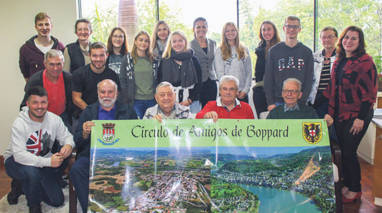 A prefeita em exercício, Eluise Hammes, junto à Coordenadora do Departamento de Cultura, Carla Schroeder e Círculo de Amigos de Boppard, presidido por Roque Bersch, receberam na tarde da quarta-feira, 3, no Gabinete do Executivo, a terceira delegação de jovens alemães que vem ao município para intercâmbio, conforme o convênio firmado em 2013 com a cidade de Boppard/Alemanha.