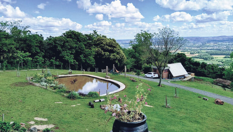 Denominada Sítio Paraíso do Anjos, a pousada rural foi idealizada pelo casal Leandro e Adriana Arenhart e recebe hóspedes há cerca de quatro meses. Traz uma proposta diferente, intimista, para quem deseja um fim de semana em um local calmo e reservado, seja para relaxar e descansar, ou para atividades junto à natureza. São duas cabanas individuais – Anjo Gabriel e Anjo Rafael – equipadas com lareira, ar condicionado e banheira de hidromassagem, garantindo o aconchego no inverno e no verão. “A ideia era fazer uma construção mais simples e desapegada possível, pensando na preservação de recursos naturais e, ao mesmo tempo, levar em conta o conforto e o bem-estar do hóspede”, afirma o casal.