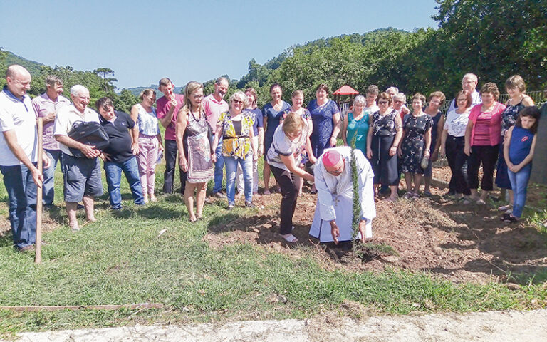 Em Arroio do Meio, encontrou com alegria, o respeito à ecologia e natureza, “onde as montanhas se revestem de verde e vida floresce de nova esperança”, finalizou. Além do bispo, o ato teve a presença da diretora do educandário, Magda Rockenbach, que juntamente com os alunos será responsável pelo zelo das árvores, da vice-prefeita Eluise Hammes, e de diversas pessoas da comunidade.