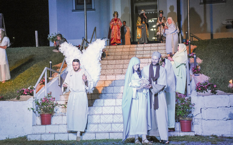 O encerramento dos festejos natalinos promovidos pela Administração Municipal de Travesseiro, deixou o público encantado. Centenas de pessoas se fizeram presentes em frente à Igreja Matriz na noite do dia 21 de dezembro para assistir a encenação “Jesus: o filho de Deus”, peça coordenada pela professora Alessandra Ames, que teve a participação de 24 atores e figurinos da comunidade de Travesseiro.