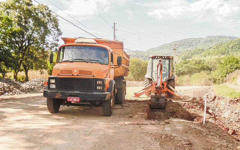 Segue em ritmo acelerado a obra de pavimentação de um trecho de 1,8 mil metros de extensão na estrada geral de Picada Essig, em Travesseiro. O projeto inicia na antiga Laticínios Rancho Bello e vai até a sede da SER Picada Essig. A obra, que está com 70º de sua infraestrutura concluída, está sendo executada pela empresa Conpasul. A obra será custeada com recursos próprios do município no valor de R$ 1,9 milhão.