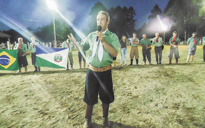Um dos momentos que marcaram o rodeio aconteceu no começo da noite de sábado, com a solenidade de abertura, onde se pronunciaram Clécio Schwartzer, diretor campeiro da 24ª RT; vereador e presidente da Câmara de Capitão, Aires Daldon; prefeito Paulinho Scheid e o patrão do CTG, que destacou a participação do Pe. Silvério neste evento. “O padre é uma bênção de Deus para a comunidade de Capitão”, disse Beneduzi. Em defesa da entidade, Beneduzi, disse que o CTG não é de meia dúzia. “O valor repassado pela prefeitura é para o povo não pagar ingresso para assistir o rodeio. Este é um evento para as famílias prestigiarem o tradicionalismo, que é uma coisa boa para comunidade e de forma muito especial para o futuro das crianças. O rodeio, que na opinião do patrão, é a maior festa de Capitão, tem 16 anos de história e consagração. “Como patrão não preciso esconder nada da sociedade”, finalizou César Beneduzi, arrancando forte aplauso do público que lotava a arquibancada.