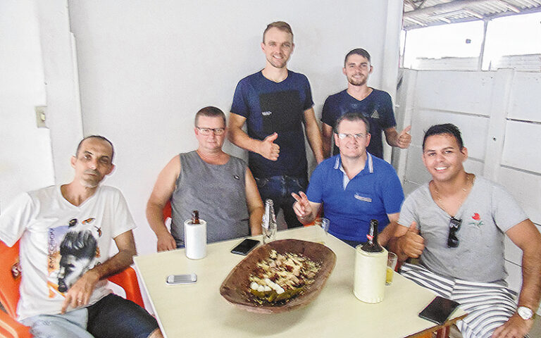 Um grupo de servidores da Empresa Refricomp, de Lajeado, se divertiu na terça-feira, feriado de Carnaval, sem usar fantasias, pular com as tradicionais marchinhas, rodas de samba e som de frevo. A turma veio até o Bar dos Amigos, em Bela Vista, onde trocou os ritmos de carnaval por jogos de bocha e um almoço com picadinho de churrasco. Foi um dia de diversão que tinha como mestres de bateria Hélio Stacke e Edi Telöcken, ambos moradores de Bela Vista que atuam na Refricomp.