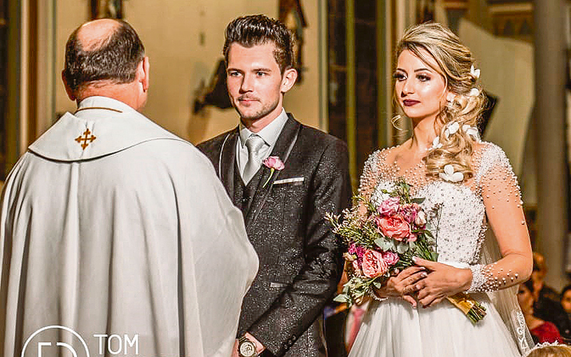 A cerimônia religiosa foi celebrada na igreja Matriz pelo padre Alfonso Antoni, com música de Mônica Haas, junto com os pais Ivo e Dalva Spohr e Lair Antônio e Cleci Kurtz.