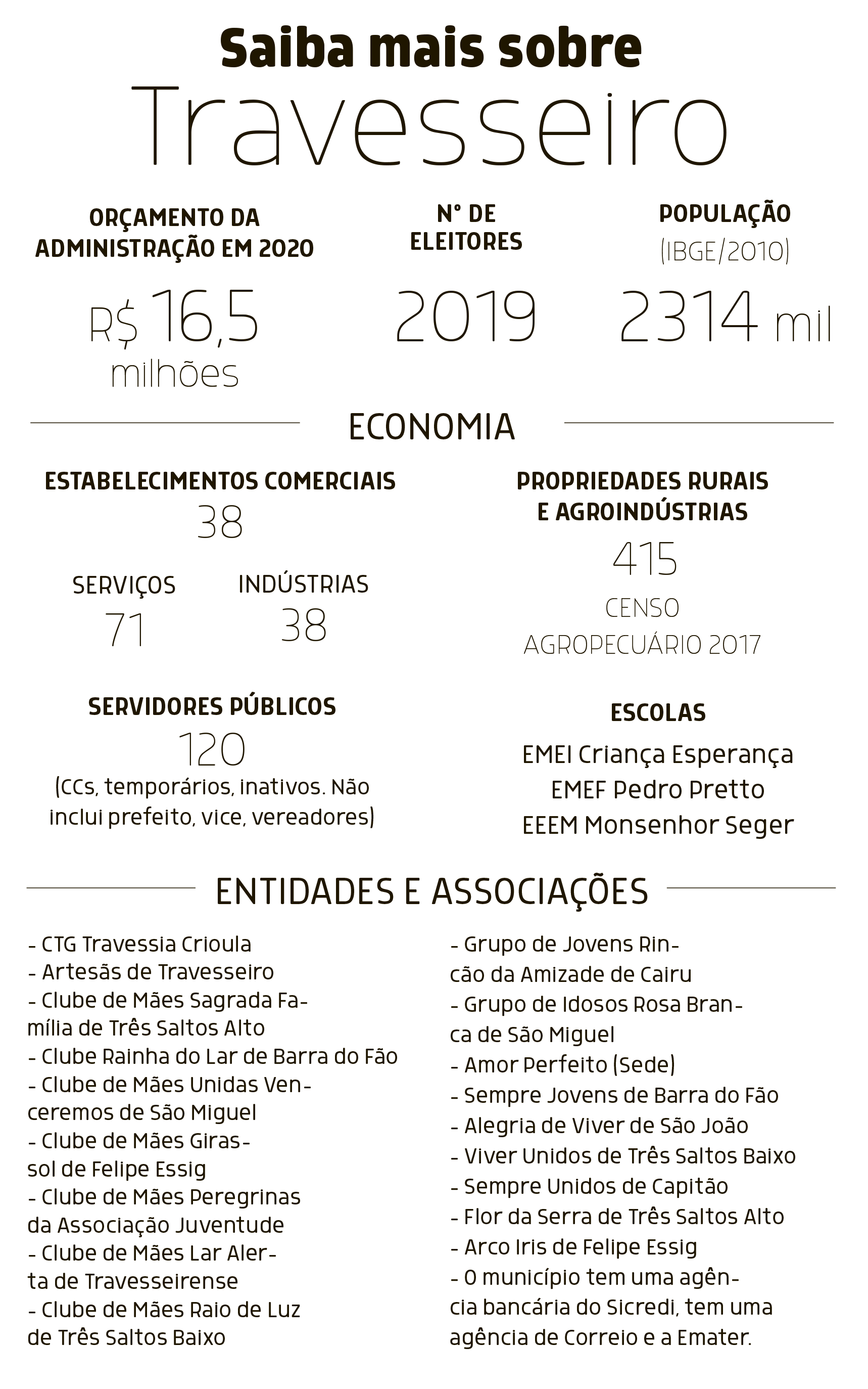 Penso que deveria haver uma renovação. Pessoas jovens ou mesmo sem envolvimento político anterior e com uma nova visão de negócios poderiam atrair novos moradores e empreendedores. Da mesma forma, temos mão de obra qualificada e muita gente que buscou conhecimento em áreas específicas, poderiam colocá-la em prática”.