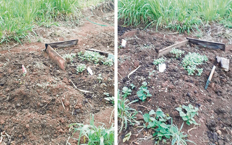 Nos dias mais críticos, o pedreiro Emerson Fröhlich, o Xugui, 46 anos, morador de Arroio Grande, irrigava sua horta todas as noites. Eis que na manhã da quarta-feira, dia 22, deparou-se com cerca de cinco canteiros completamente revirados. “Não comeram nenhum alimento plantado, mas fuçaram tudo. Pelo estado do chão, parecia que foi realizado um baile”, detalha. Xugui revela que nos rabanetes, cenouras e beterrabas houve perda total. As demais hortaliças, cuja raiz não é o alimento, foram replantadas na horta da cunhada, que é cercada e fica nas imediações. Agora, Xugui também estuda cercar sua horta. Na temporada passada, quando não houve seca tão expressiva, sua horta também já havia sido atacada.