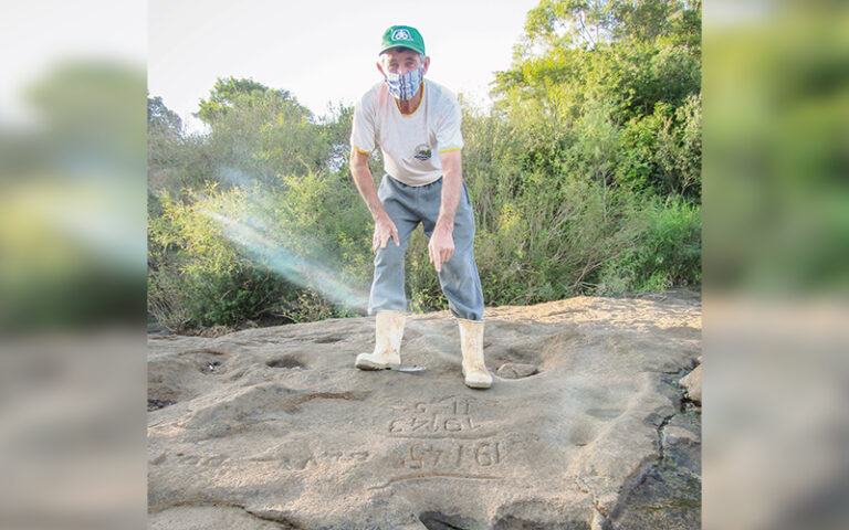 No local, foi possível constatar que o leito está cerca de 20 cm inferior às medições registradas em maio de 1945, 25 cm mais baixo que em maio de 2012, e alguns centímetros abaixo das outras medições feitas em abril de 2020. Segundo Schmitz, é comum o nível do rio oscilar em um único dia, devido à abertura das comportas da barragem do rio Carreiro, em Serafina Corrêa, ao vento e à evaporação. Contudo, apesar da chuva de domingo e segunda-feira, o volume d’água não reagiu. “Já vi o rio baixo, mas nunca assim”.