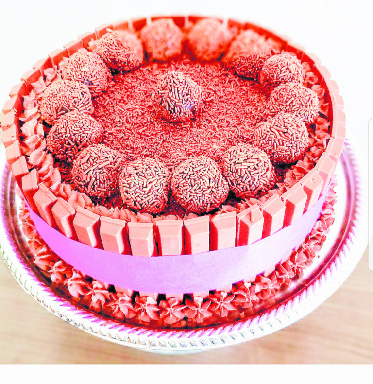 Coloque um deles depois novamente nata e bombom picado, depois outro pão de ló e o disco de mousse de chocolate, coloque nata e bombom e o último disco de pão de ló. Lembrando que desde o início da montagem você já coloque nas laterais os Kitkat