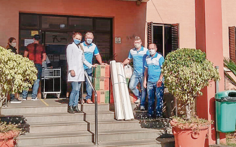 Mesmo com suas atividades interrompidas por causa do coronavírus, o grupo do Master do Cruzeiro de Linha 32, coordenado por Flávio Schmitz, entrou em campo com seu grupo de 32 integrantes. A equipe que costuma realizar jogos aos domingos de manhã, normalmente em duas oportunidades por mês, se juntou a pandemia do coronavírus. O grupo que mantém um caixa com contribuições mensais de cada integrante, tomou como decisão juntar a arrecadação de dois meses para fazer uma doação ao Hospital São José, de Arroio do Meio, com a compra de 340 litros de água sanitária, cinco rolos de TNT para confeccionar aventais e 500 luvas. O material foi entregue na manhã do último sábado.