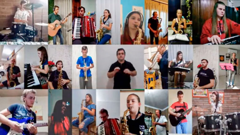 Lançado na página oficial de Arroio do Meio no Facebook (@arroiodomeiooficial), no último fim de semana, o vídeo produzido pela Orquestra Municipal, com 25 integrantes tocando os instrumentos nas próprias casas, mas unidos pela rede, já ultrapassou as 10 mil visualizações. O professor e coordenador do grupo, Cristiano Leonhardt, lembra que a ideia surgiu após ver o vídeo feito por integrantes da Companhia do Sax – um grupo de saxofonistas independentes que fazem aula juntos. “Eles fizeram um vídeo, com cada um tocando em casa, então lancei a ideia na nossa orquestra, todos gostaram da proposta e começou o processo”, relata.