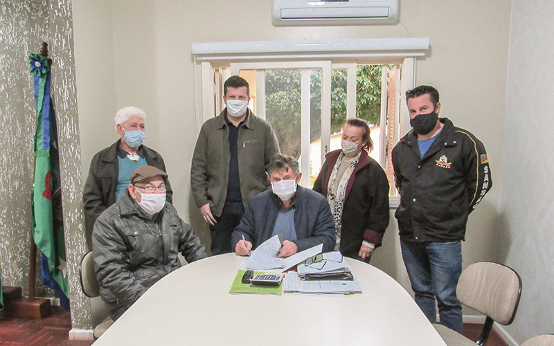 A manhã da última sexta-feira, dia 5, ficou marcada pela oficialização do repasse do imóvel onde estava instalada a Laticínios Rancho Bello, à Ecofeed. Participaram do ato, o prefeito Genésio Roque Hofstteter, os sócios do empreendimento Fabrício Gasparotto Baioco de Pouso Novo, Marco Hauschild, Luciano de Oliveira e Valdir de Oliveira, de Lajeado, o chefe de gabinete Lasiê Amauri Delazerri, e a secretária de Administração e Finanças, Eloíse Maria Zanatta.