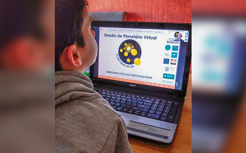 A manhã da terça-feira, dia 4, proporcionou uma experiência única para as ‘Meninas do Guara’— grupo de estudantes do ensino médio da Emef Guararapes, de Arroio do Meio, que faz parte do projeto Meninas na Ciência, da Univates. Elas integraram a sessão de planetário virtual, realizada de forma síncrona, integrando planetários de todo o Rio Grande do Sul. A sessão foi transmitida (e ainda está disponível para ser assistida) no canal do Planetário da Unipampa no YouTube. As meninas mediaram as interações dos colegas e de escolas, que podiam mandar perguntas para os apresentadores.