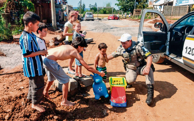 A ação Criança Feliz, desenvolvida pela Brigada Militar do Rio Grande do Sul, fez a alegria dos pequenos de comunidades carentes e entidades assistenciais de vários municípios do estado. Em Arroio do Meio, os brinquedos, jogos e livros, arrecadados junto à comunidade, foram entregues na segunda-feira, dia 12, em locais como a Rua Campos Sales, no bairro Navegantes e a Amam.