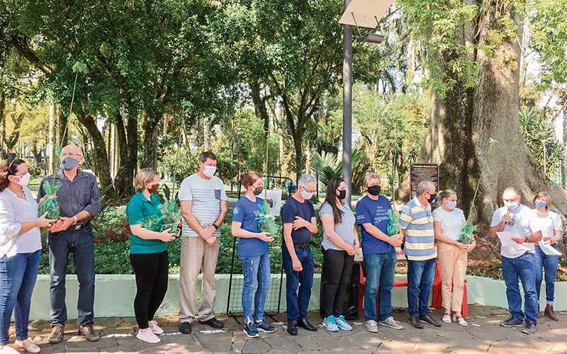Mudas de paineira foram entregues para serem plantadas, marcando o centenário da árvore. Cerimônia teve a bênção do padre Alfonso Antoni