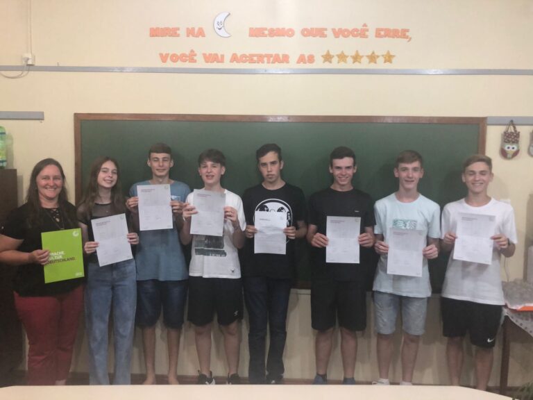 Eles agora tem certificado de exame de proficiência em língua alemã e estão abertos a oportunidades: alunos do 9º ano da Escola Municipal de Ensino Fundamental (Emef) Professor Arlindo Back de Arroio do Meio receberam certificado pelo exame de proficiência ‘Fit in Deutsch I’ emitido pelo Goethe-Institut que equivale ao nível AI.