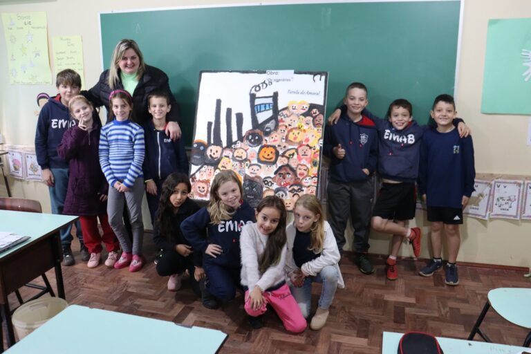 Criatividade e imaginação são a marca registrada dos alunos do 3° ano da Escola Arlindo Back do distrito de Forqueta, em Arroio do Meio. Os pequenos produziram trabalhos e fizeram releituras da artista brasileira Tarsila do Amaral. Obras como ‘Os Operários’ e ‘Abaporu’ receberam novas cores ao serem pintadas por cada aluno em diferentes cores, com uso de lápis de cor e tinta. Bottons e cartazes também foram produzidos pela classe baseados no legado da artista brasileira.