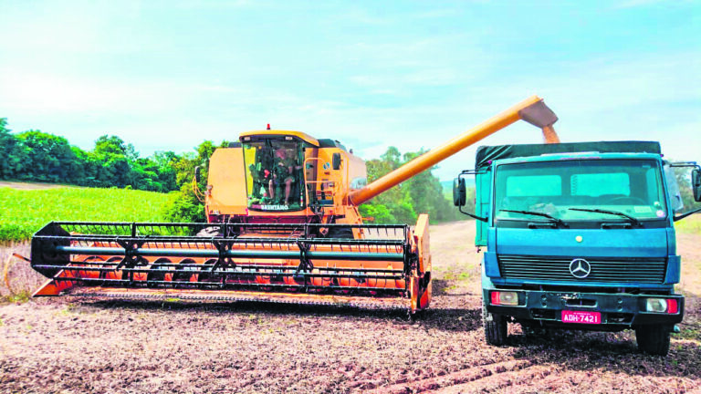O produtor Jair Brentano, 54 anos da Cascalheira e seu filho Luan, 20 anos, tiveram que pausar a colheita da soja em decorrência das chuvas mais expressivas dos últimos dias. Contudo, a maior parte dos 50 hectares cultivados já havia sido colhido, restando somente a soja tardia, que deve ser colhida quando a lavoura estiver menos húmida.