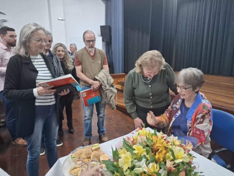 Na noite, ela recebeu o merecido prestígio, abraço e carinho de muitos amigos e ex-colegas da Univates, pessoas ligadas à cultura no Vale do Taquari, dos filhos Silvio e Ivana, que estiveram presentes com suas famílias. O livro teve a coordenação editorial de Meire Brod e ilustrações de Martina Schreiner. A secretária de Educação de Arroio do Meio Iliete Winck e a professora e coordenadora pedagógica Márcia Thomé também prestigiaram o evento.