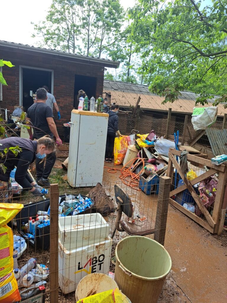 Os animais ficaram em caminhões, carros e patrolas e dentro da Secretaria de Obras que chegou a entrar água. Ela diz que o grupo já recebeu rações e outros utensílios e que é necessário agora a doação de casinhas, remédios, caminhas, rações para gatos e filhotes. “Mais tarde, vamos começar com as reformas da sede e iremos precisar de material de construção.” Após a tragédia, a entidade reuniu um grupo de voluntários que deixou ração em diversos pontos do município para alimentar os cães perdidos. “Quero agradecer todos que já nos ajudaram e também os barqueiros.”