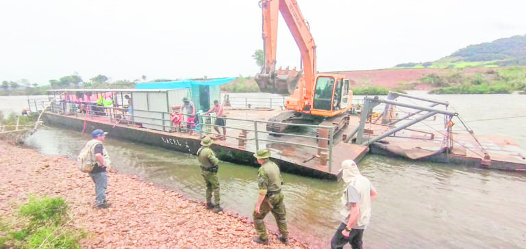 “VAMOS SEGUIR ATÉ SANTA TERESA E SÃO VALENTIM DO SUL” – O responsável pela balsa Celsom Otacílio Herbele, 71 anos, possui 55 anos de experiência no ramo estaleiro e de construção naval. Sua empresa Lacem por décadas atuou com balsa entre Triunfo e São Jerônimo e na instalação das torres e transmissão de energia na Lagoa Mirim, na Reserva da Tainha, transportando equipamentos e máquinas com 12 balsas.