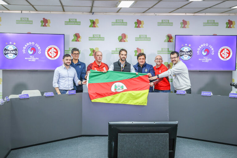 Na terça-feira, 21, na sede do Centro Administrativo de Contingência do Governo (CAC), Grêmio e Internacional lançaram a campanha Jogando Junto – Pela Reconstrução do RS, ação que visa estimular a doação por parte de empresas para a reconstrução do Estado usando a força e a credibilidade da marca dos dois clubes.