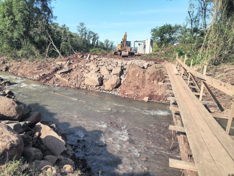 Nas imediações, a força da água do arroio que desce por São Jacó destruiu pontilhão que precisou de uma reconstrução de forma urgente para permitir a passagem de caminhões que precisam fazer o carregamento de porcos que estavam alojados numa propriedade no trecho da estrada que dá acesso para a Gruta de Nossa Senhora de Lourdes, em Linha Alegre. Para agilizar o trabalho, a prefeitura contou com maquinário terceirizado. A reconstrução do pontilhão, acompanhada pelo prefeito Jari Hunhoff e pelo secretário Paulinho Scheid, foi feito com a colocação de 10 tubos de concreto, tipo galeria com três metros de altura cada. Um pouco adiante deste local, na mesma estrada também foi necessário a construção de um pontilhão para permitir o acesso à propriedade desejada.