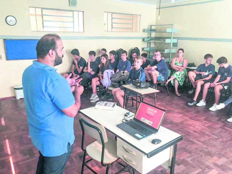 Conectando teoria e prática, o arroio-meense, formado em Jornalismo, crítico do cinema, ator e produtor, apresenta aos alunos a história do cinema pelo mundo, passando um pouco pelos períodos e gêneros do cinema francês, alemão, argentino, americano e finalizando com o cinema brasileiro. “Levei ao conhecimento do público jovem filmes que foram gravados aqui na região, mas poucos ficaram sabendo, como as filmagens de ‘Os Famosos e os Duendes da Morte’, do diretor Esmir Filho, que teve cenas rodadas na Ponte de Ferro. Ou, ainda, ‘Música para quando as luzes se apagam’, rodadas em Santa Clara do Sul e região, com a atriz Júlia Lemmertz, um longa do diretor Ismael Caneppele”, comenta.