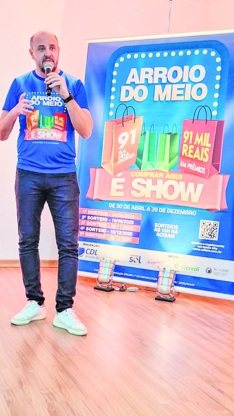 ‘Arroio do Meio Comprar Aqui é Show’ é uma realização da Câmara de Dirigentes Lojistas (CDL) de Arroio do Meio e conta com apoio de Girando Sol, Neugebauer, Sicredi e Acisam. Confirmaram a participação 134 empresas associadas da CDL e Acisam e empresas não associadas dos mais diversos segmentos.
