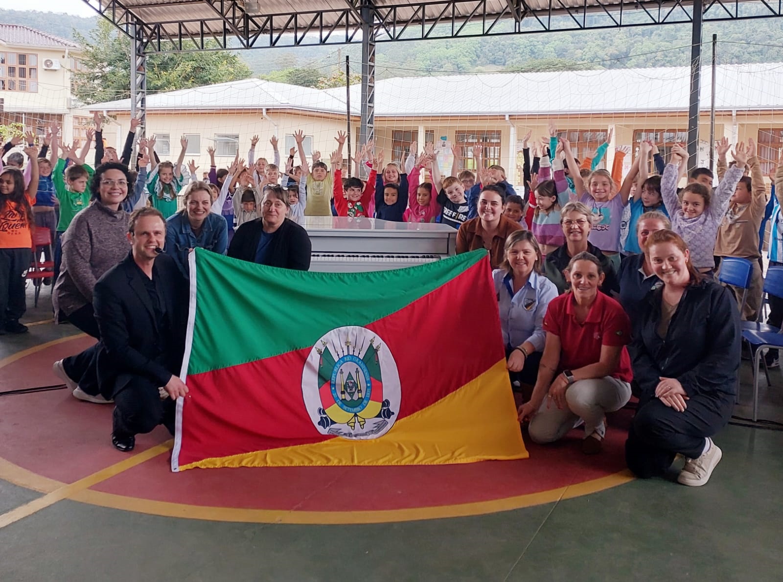 Um dos pontos altos da proposta é a instalação de um piano branco de cauda no pátio ou auditório da escola. O instrumento vem acompanhado da bandeira do Rio Grande do Sul, que ao fim das atividades é doada à instituição de ensino, em gesto simbólico de união e esperança no processo de reconstrução do estado após as enchentes.