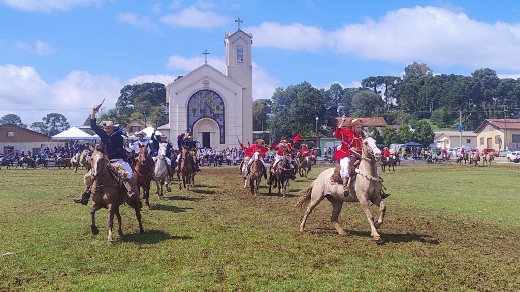 São 9h da manhã do sábado, 4 de outubro, um dia ensolarado e de céu azul no pacato distrito de Cazuza Ferreira em São Francisco de Paula, quando moradores e visitantes se reúnem ao redor de um campo aberto em frente à Igreja Católica. O motivo: acompanhar uma tradição que mantêm há cerca de 120 anos na localidade, a Festa das Cavalhadas.