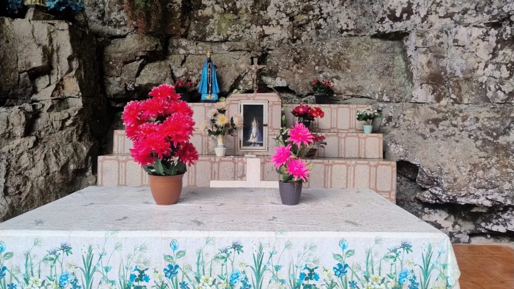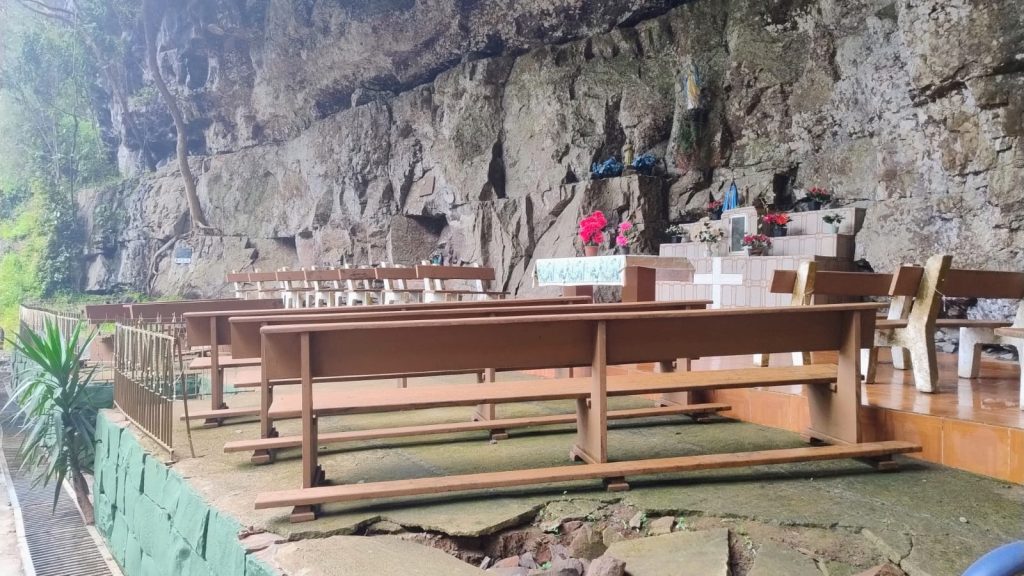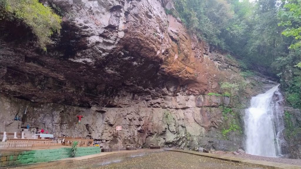 Na gruta, pequenas imagens de diversos Santos e rosários pendurados num cercado registram a fé de devotos. Um amplo espaço para orações, sob o som da imponente cascata nas proximidades, permite momentos para promessas e agradecimentos.