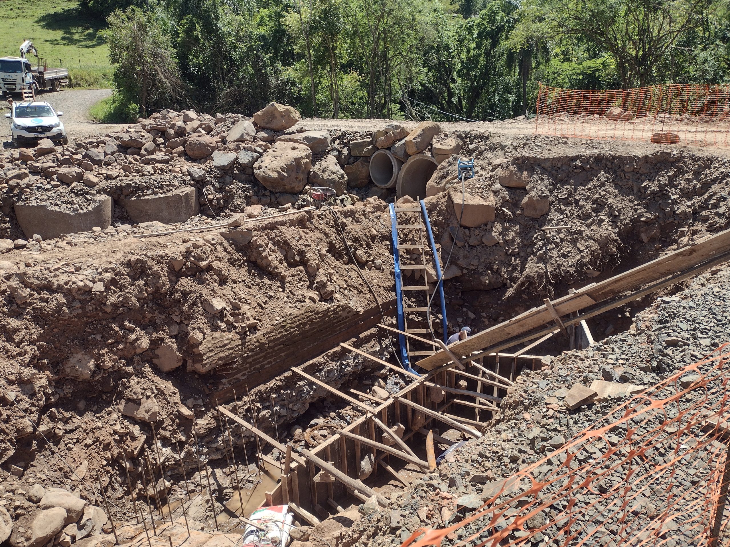 Com a liberação de uma verba de R$ 409 mil da Defesa Civil Nacional, através do Ministério da Integração e do Desenvolvimento Regional, o município de Pouso Novo deu início à construção de uma ponte de concreto sobre o arroio Bravo, na localidade de Arroio do Leite. O projeto que está sendo executado pela empresa Pizatto Engenhria, de Alvorada, vai ter duas pistas com 10,60 metros de comprimento por 5,05 metros de largura. O custo da obra está orçado em R$ 409 mil. A obra deve estar concluída antes do fim deste ano. A construção de uma ponte no local era necessária já que o pontilhão que existia no local foi destruído durante a enxurrada de maio de 2024, causando dificuldades para o trânsito de caminhões que circulam neste trecho para atender pelo menos três empreendimentos agrícolas com suínos e frangos.