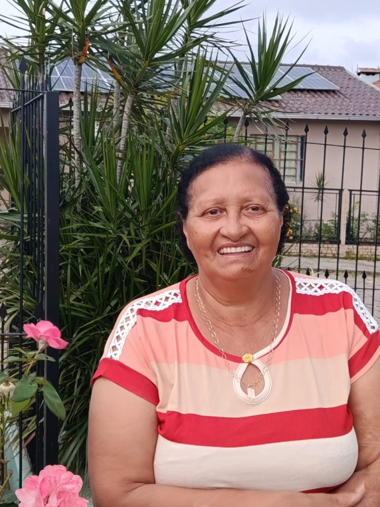Na comunidade, segue ajudando, ouvindo e entende que servir é uma forma de oração. Integra o Coral Cristo Rei do bairro Aimoré, nas quintas-feiras participa dos terços realizados na casa da Ministra Católica Beatriz Rodrigues. Gosta de participar dos Cafés organizados pelos Clubes de Mães, nas diferentes comunidades. Mas hoje procura cuidar mais do próprio corpo e da alma, pratica ginástica nas segundas e sextas-feiras.
