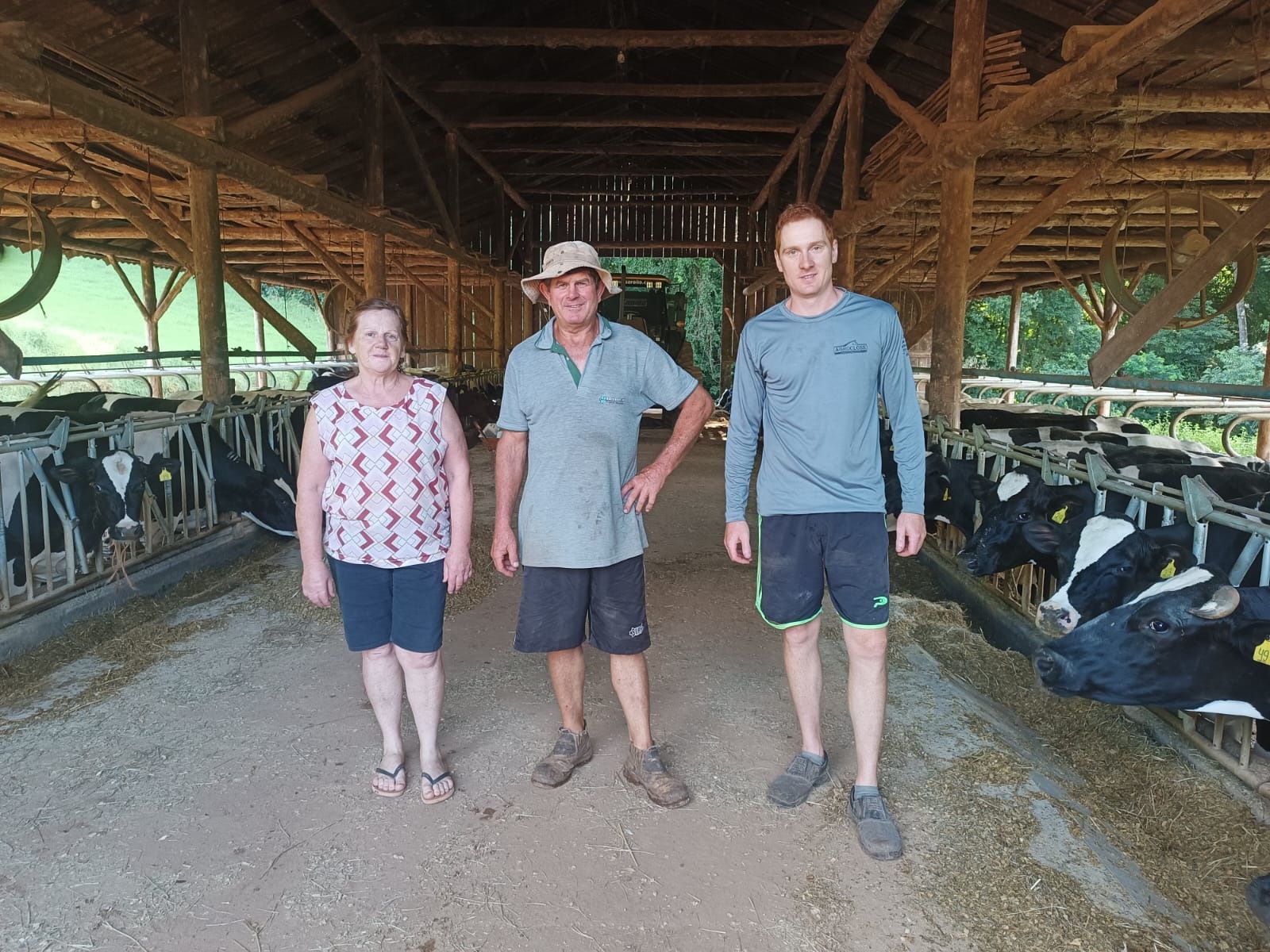 A família trabalha atualmente com cerca de 100 cabeças de gado, das quais 58 são destinadas à produção leiteira. A média diária gira em torno de mil litros de leite, variando conforme as condições de manejo e produção. Ainda assim, segundo Valmir, o valor recebido hoje, em torno de R$ 2 por litro, está longe de garantir tranquilidade financeira frente aos altos custos da atividade. Hoje, o trabalho na propriedade é realizado exclusivamente por Valmir, sua esposa Aneli e o filho Fábio, que seguem resistindo na pecuária de leite apesar das dificuldades enfrentadas diariamente.